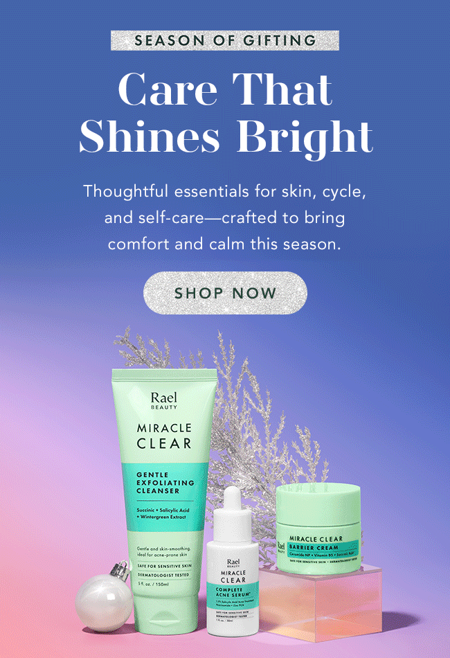 We take a holistic, science-backed approach that goes beyond just pads and tampons. From wellness supplements to skincare, Rael supports your cycle from start to finish—body, mind, and spirit.