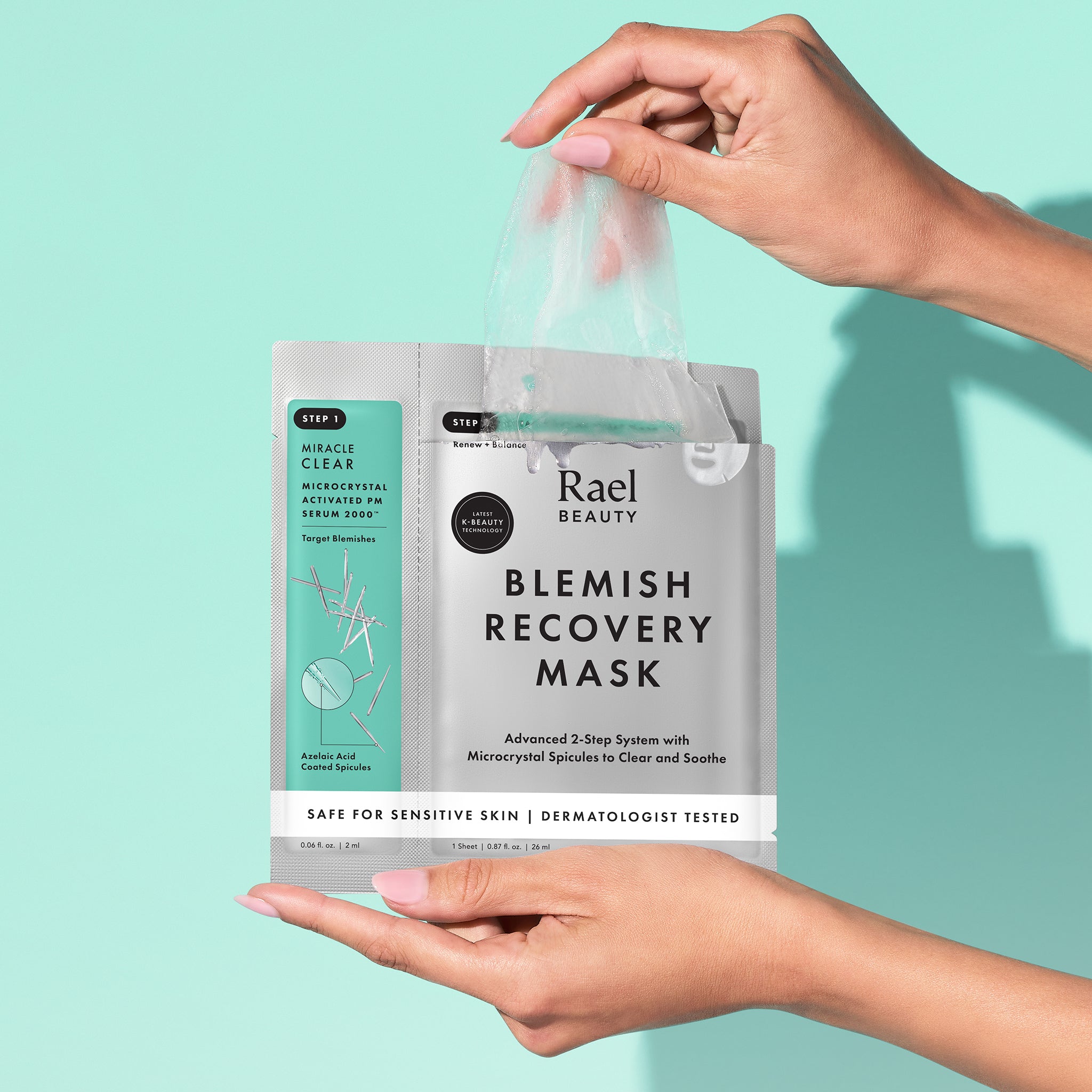 Meet the 2-step Blemish Recovery Mask designed to support skin’s natural renewal process and promote clearer-looking, revitalized skin with the help of powerful extracts. First, our Microcrystal technology serum helps activate the skin’s surface and prepare it for improved absorption. Then, a hybrid gauze-to-gel sheet mask infused with Cica Exosomes delivers calming hydration while sealing in the Microcrystal serum. Experience visibly smoother, balanced, replenished skin with this targeted ritual.
