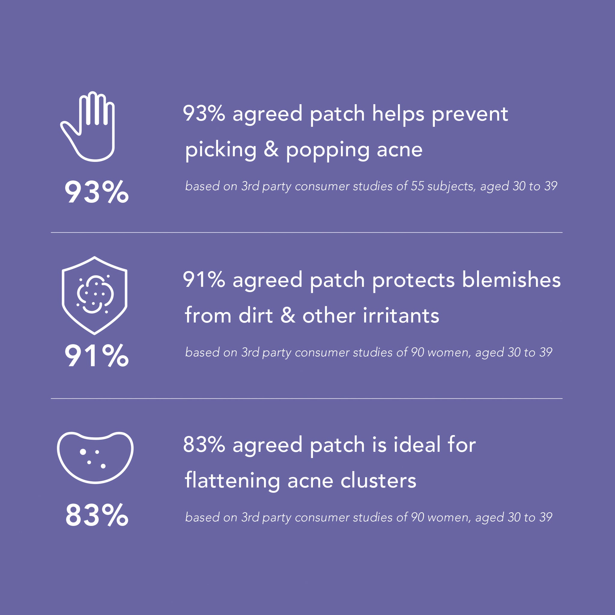- Hydrocolloid helps absorb excess fluid and oil from multiple blemishes at once