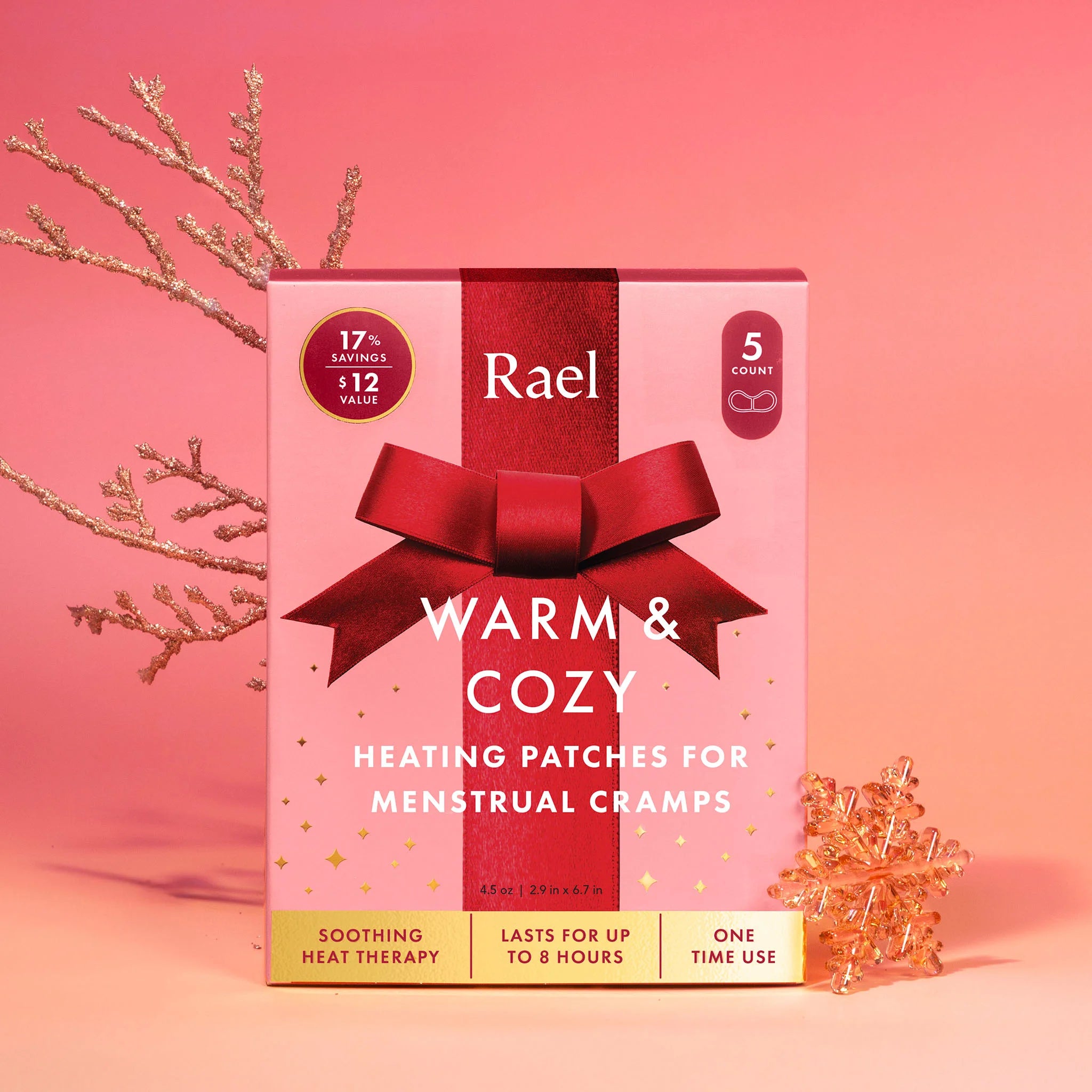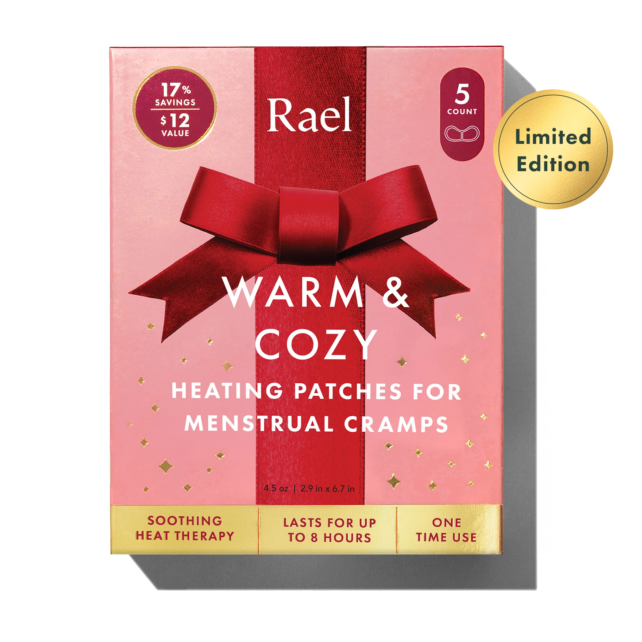 Give yourself the gift of warmth and comfort this holiday season with Rael’s limited-edition Warm & Cozy Heating Patch Set. These ultra-thin, discreet patches deliver up to 8 hours of gentle heat to help ease menstrual cramps naturally—perfect for holiday travel, family gatherings, or cozy nights in. Infused with a calming blend of rose, lemon, and jasmine oils, the patches support blood flow and muscle relaxation, helping you feel more at ease while enjoying the season.